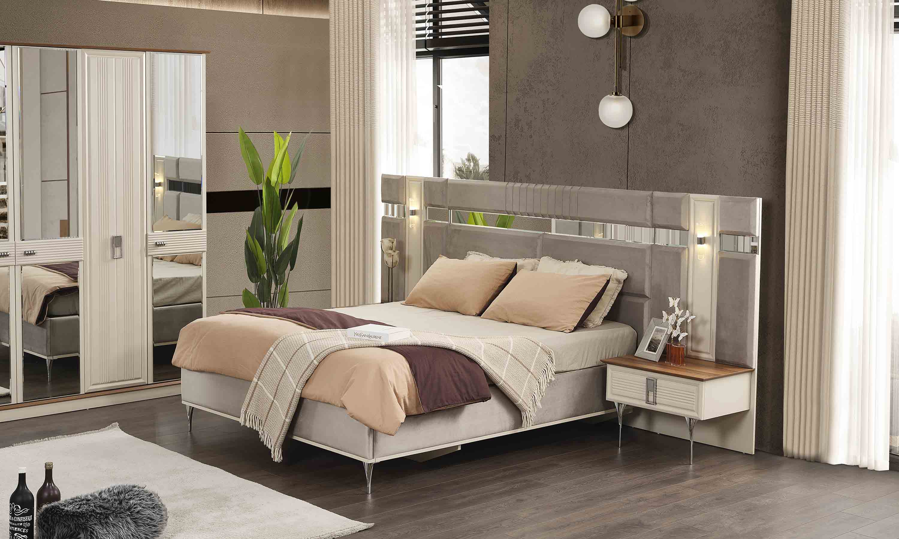 | Takım İçeriği | ● Dolap ● Karyola ve Başlığı ● 2 Adet Komodin ● Aynalı Şifonyer |