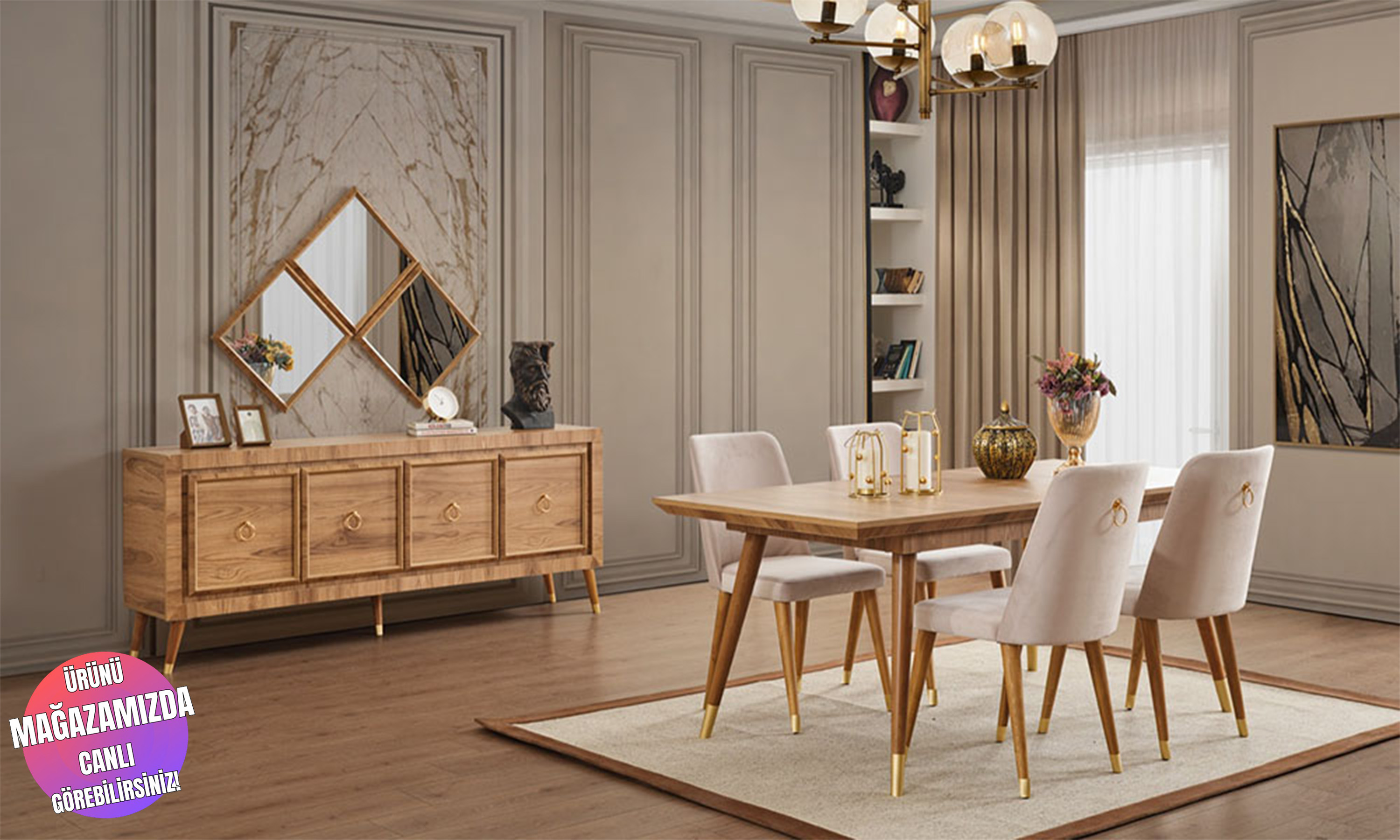 Takım İçeriği | ● Masa ● 6 Adet Sandalye ● Aynalı Konsol |