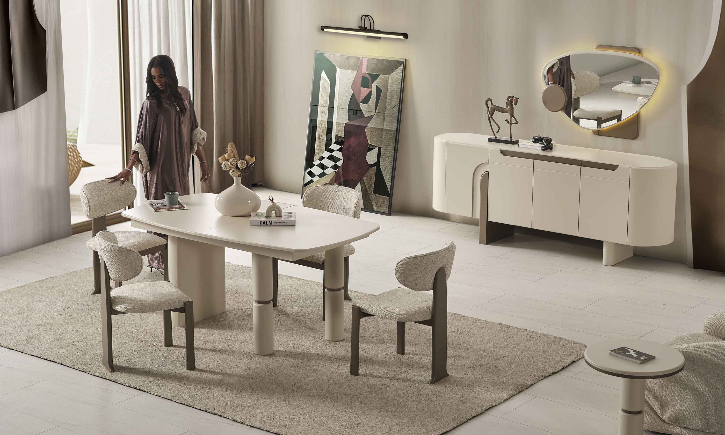 | Takım İçeriği | ● Masa ● 6 Adet Sandalye ● Aynalı Konsol |