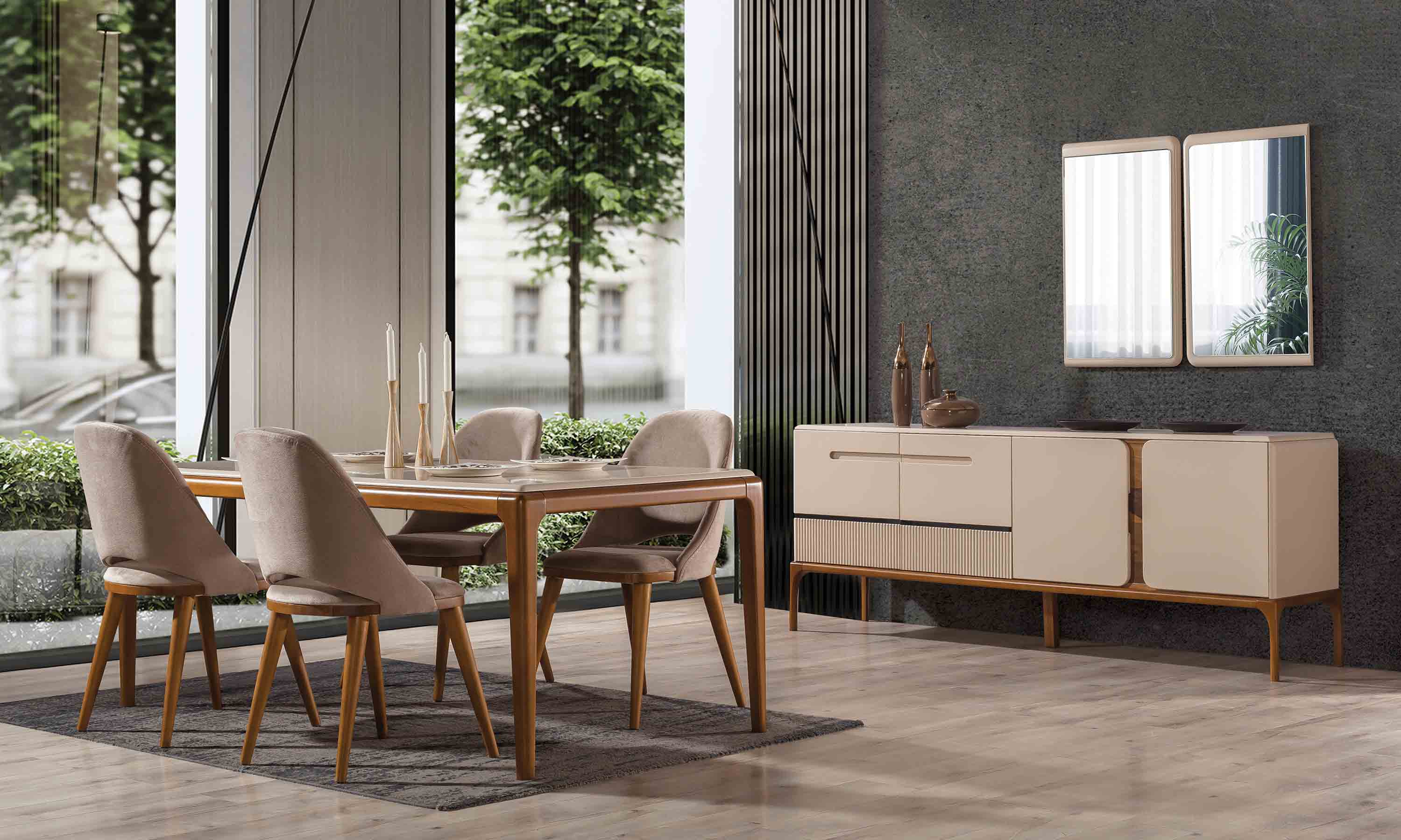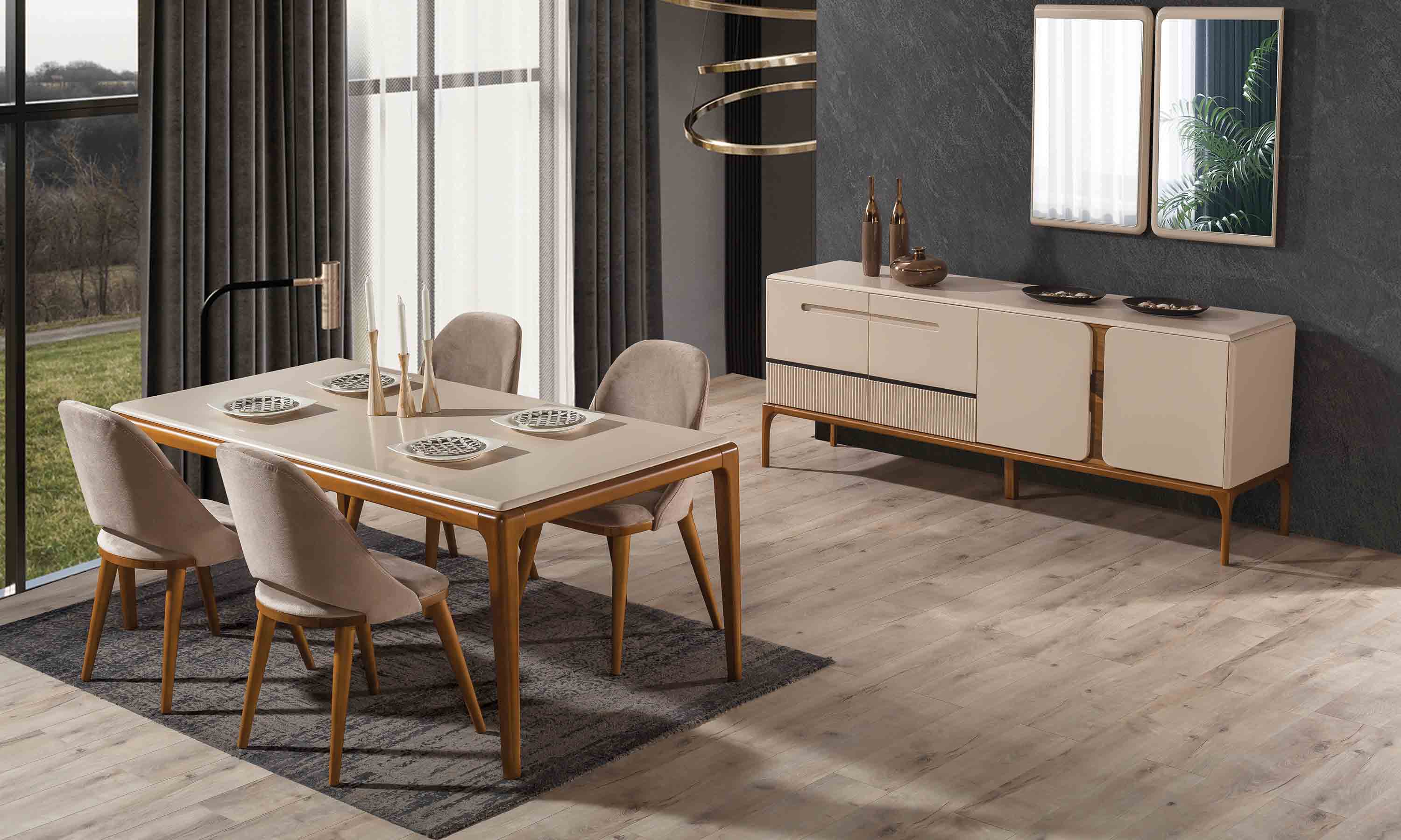 | Takım İçeriği | ● Masa ● 6 Adet Sandalye ● Aynalı Konsol |