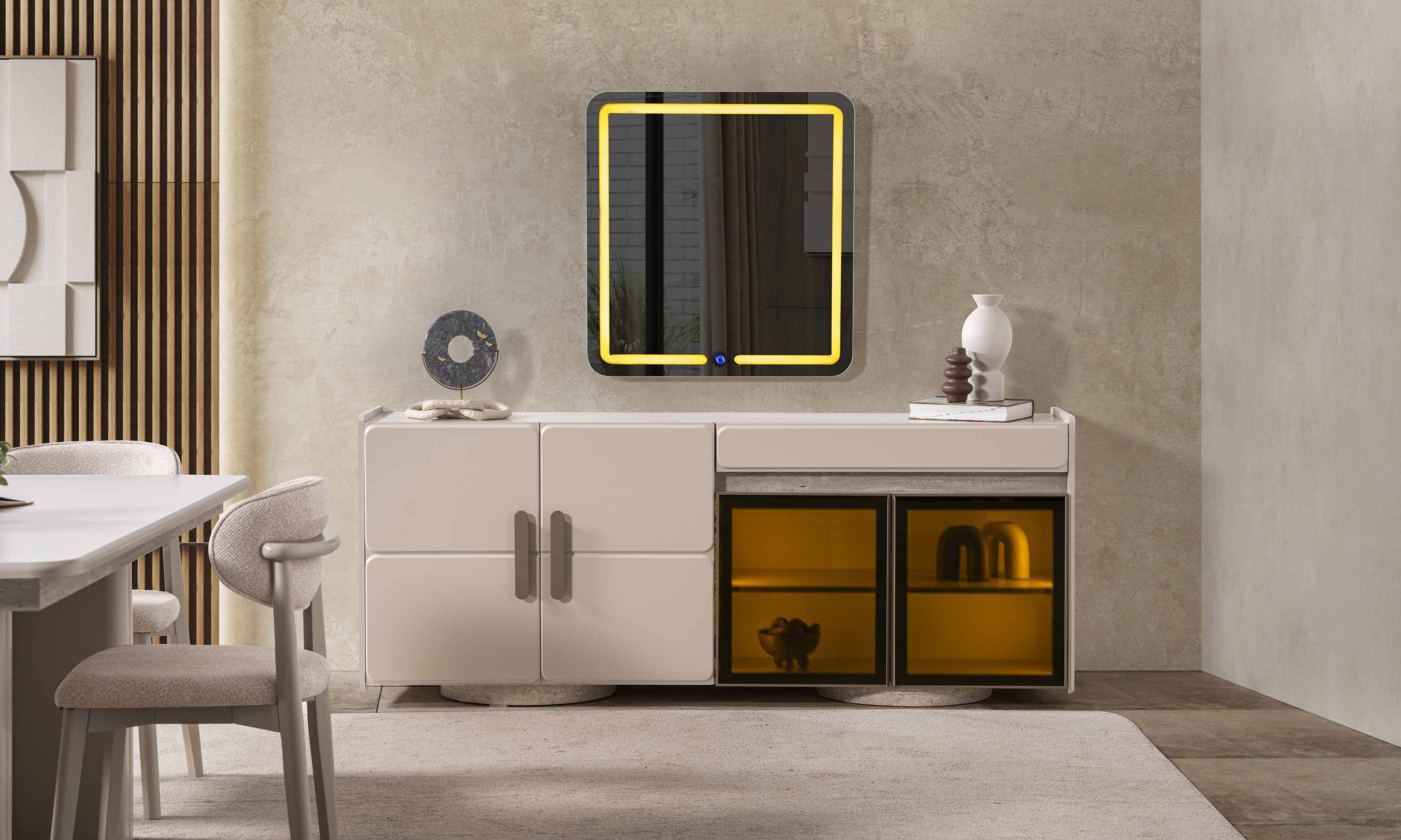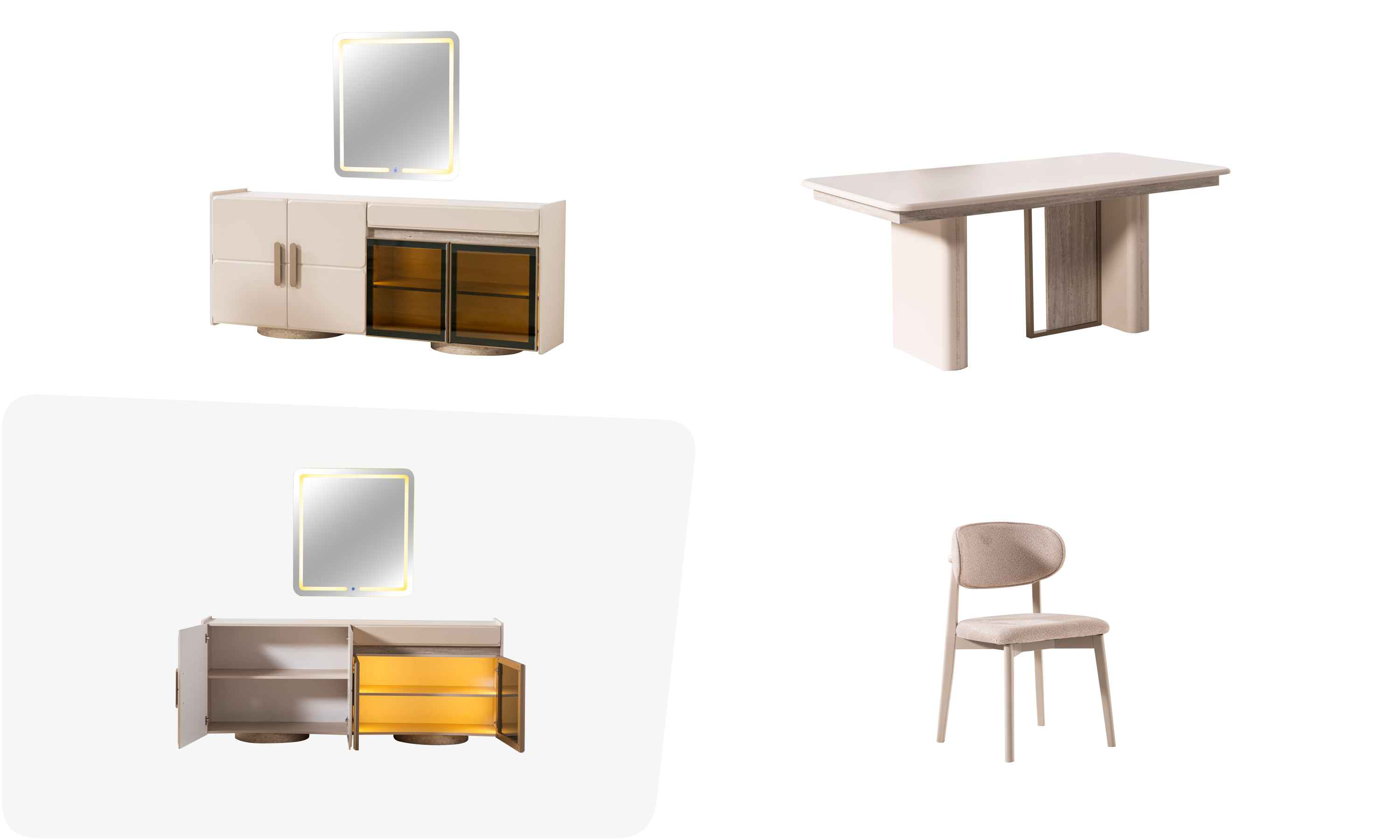 | Takım İçeriği | ● Masa ● 6 Adet Sandalye ● Aynalı Konsol |